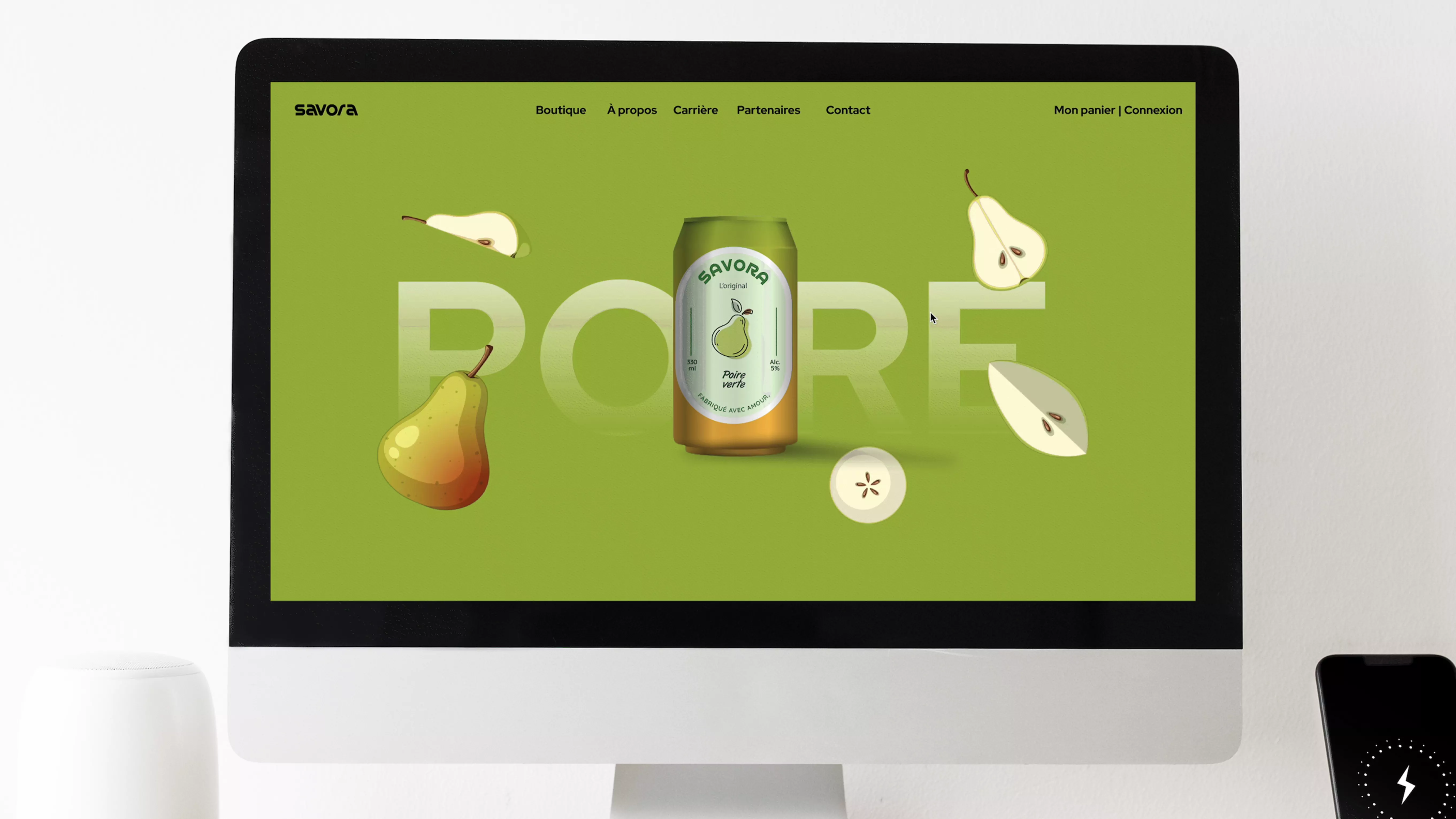 Savora est une marque innovante de boissons en canette, proposant une gamme de saveurs variées et rafraîchissantes, comme la pomme, pour satisfaire toutes les envies. Ce projet avait pour objectif de capturer l'essence de la marque à travers une identité visuelle moderne et dynamique.Dans le cadre de ce projet, j’ai conçu une landing page immersive mettant en avant les produits et leurs atouts. Cette page intègre une animation de parallaxe au scroll, offrant une expérience interactive et fluide pour l’utilisateur. Chaque section dévoile progressivement les saveurs, le design des canettes, et l'univers unique de Savora, rendant l'exploration du site captivante.